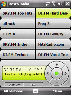 Resco Radio will turn off the display after a configurable amount of time, saving battery power so you can stream music longer. It also supports authentication for pay based premium internet radio sites. So far I have not used this feature.