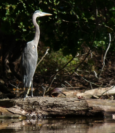good shot of a heron, he ended up walking into the woods. seemed odd to see him walking