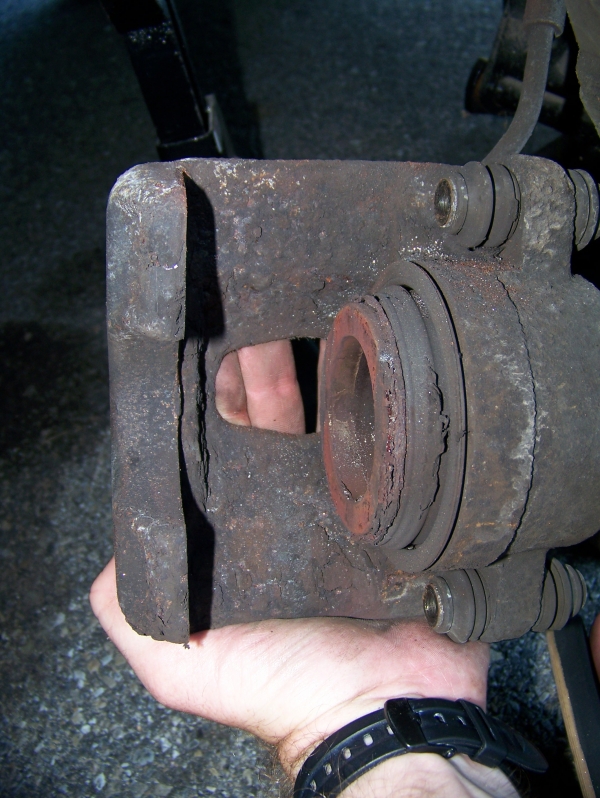 old right caliper, seal is craked. replaced with rebuilt caliper