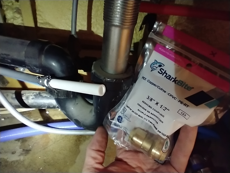gray pb already coupled to pex (both 3/8"). Now temporary shark bite goes from 3/8" pex to 1/2" pex
