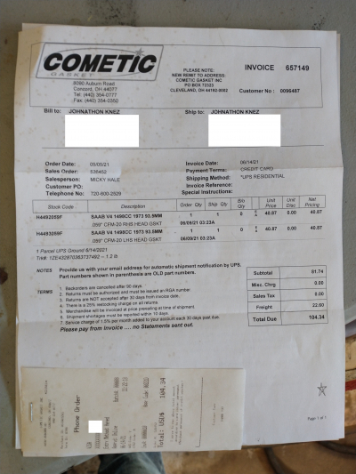 the specs for the custom made cometic head gaskets. These worked well and are reasonably priced