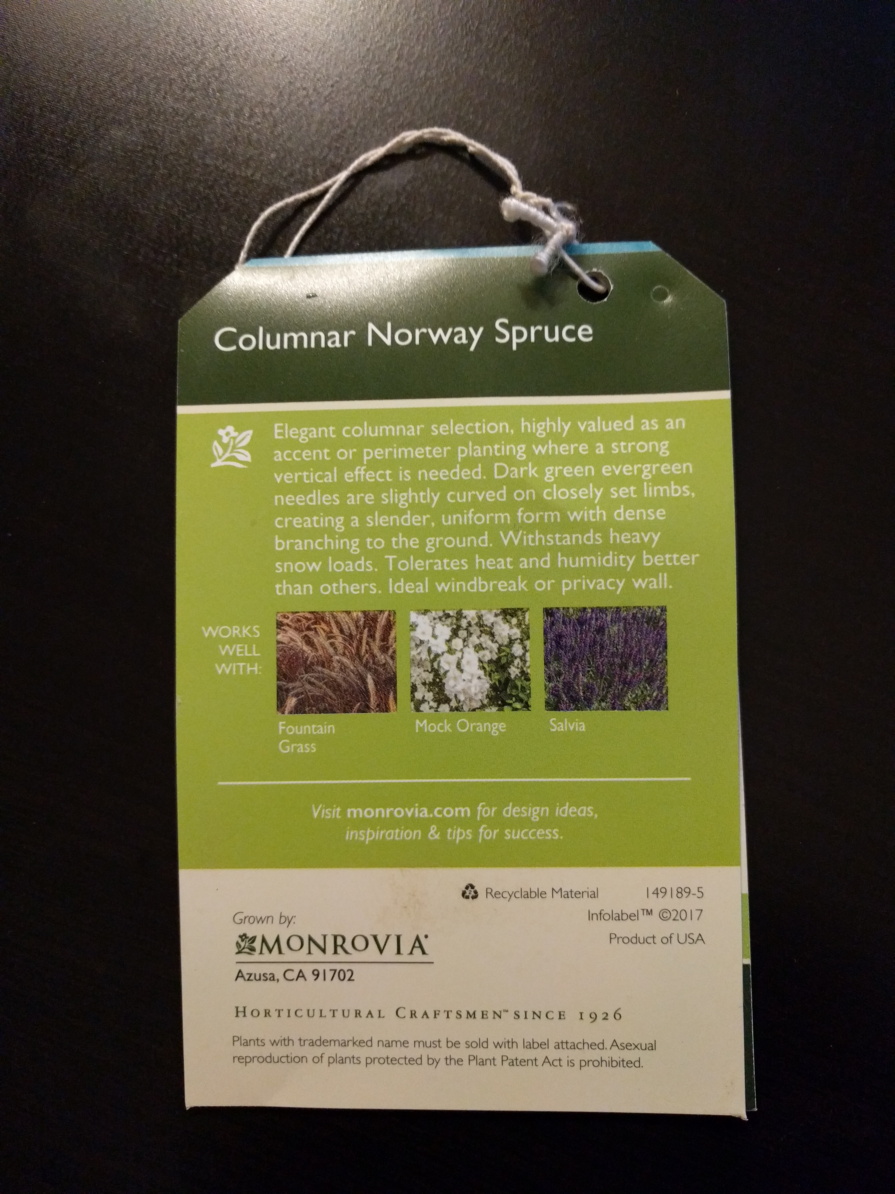 5/19/2018 - Planted 2 Columnar Norway Spruce trees flanking the garage south window.