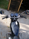 My plan is to turn it into a cafe racer. The handlebars were the first step down that path. The installation took about one hour. Most of that time was spent figuring out how to re-route cables and wires now that the bars were no nearly as long. Eventually I will need to replace all those cables, but for now that are just tucked away.