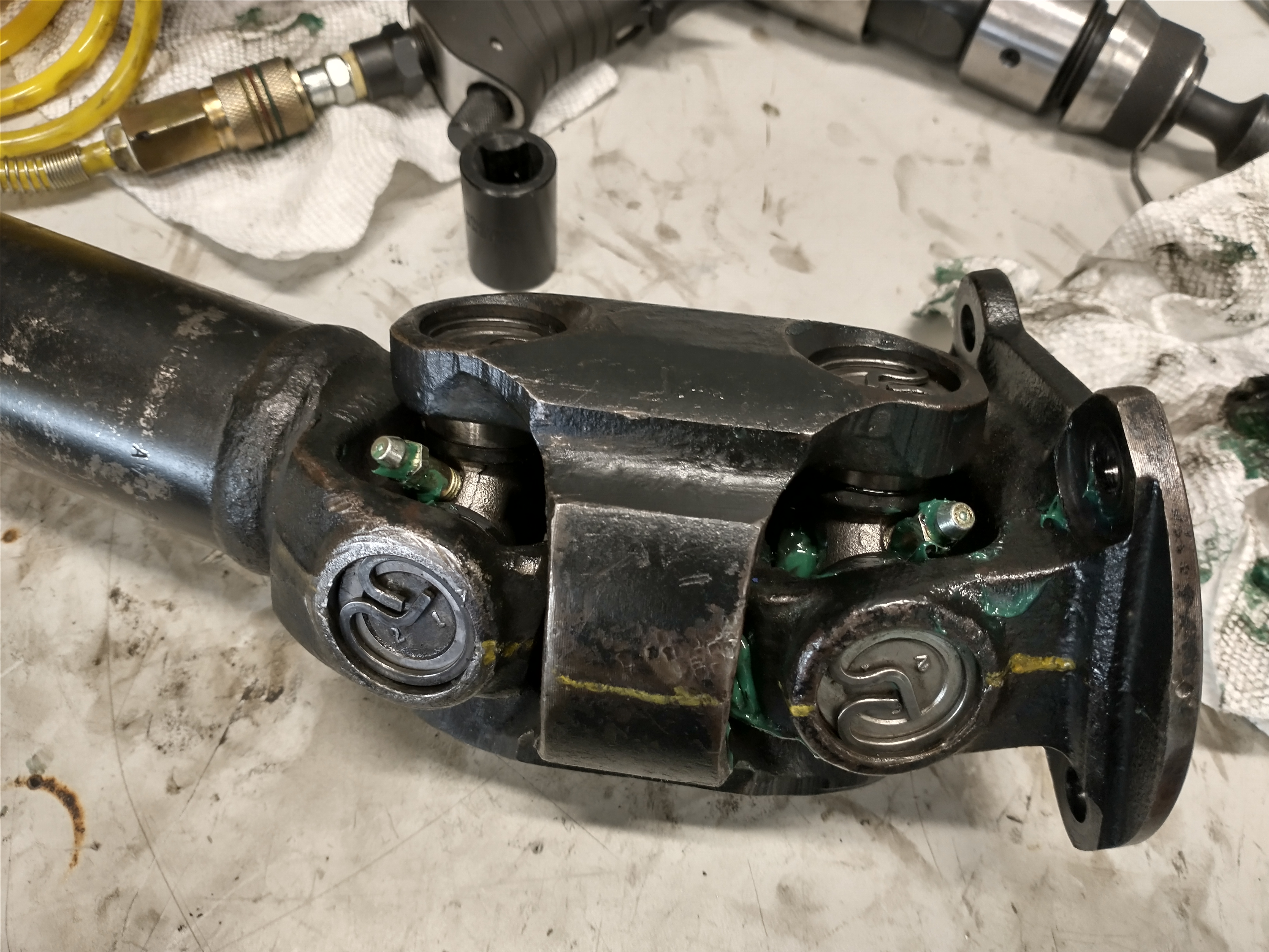 I tried to lubricate the ball joint on the rear shaft but unfortunately that u-joint won't accept any grease. It must be blocked internally. I thought about pre-emptively replacing the entire rear drive shaft but they are unreasonably expensive so I left my working one alone.