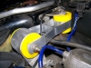 So far I have only installed the new bushings on the upper engine torque arm. It was a bear getting the old rubber mounts out but using patience, a vast selection of pnuematic and standard power tools, they came out.