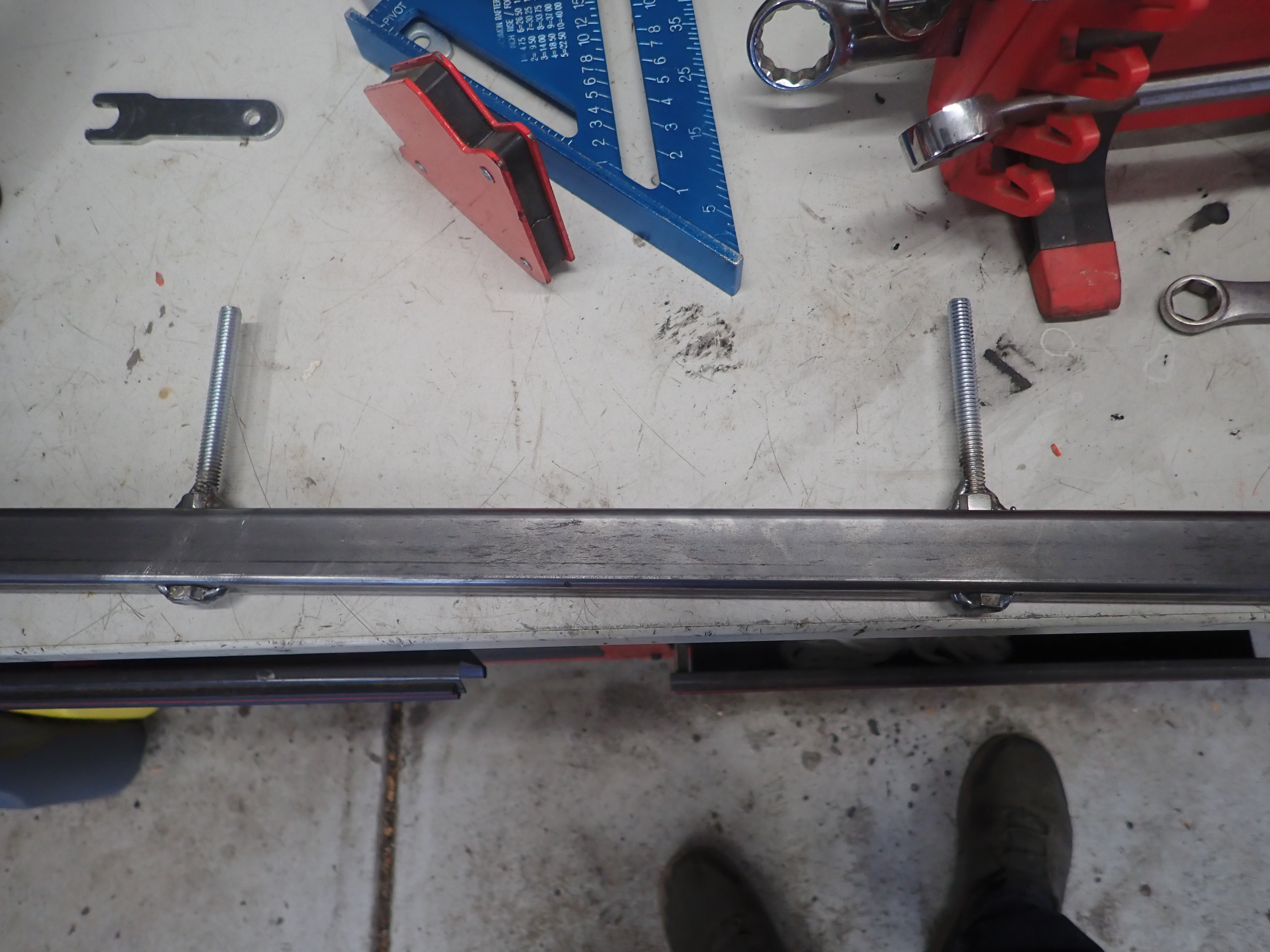 The alignment tool design worked well. The one change I would make, which I can still make, is cutting the lower rail shorter. When you check caster you need to turn the wheel forward 20 degrees, take a reading, then back 20 degrees and take a reading. The alignment tool I made was horizontally very long, great for checking toe-in but unfortuatenly prevented the wheel from turning the full 20 degrees when checking castor. That horizontal bar needs to be shorter to avoid hitting the car body, or lower to just go underneath the body. Going too long is better than too short as I still have the option to cut mine to the right length. Pictures