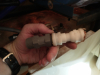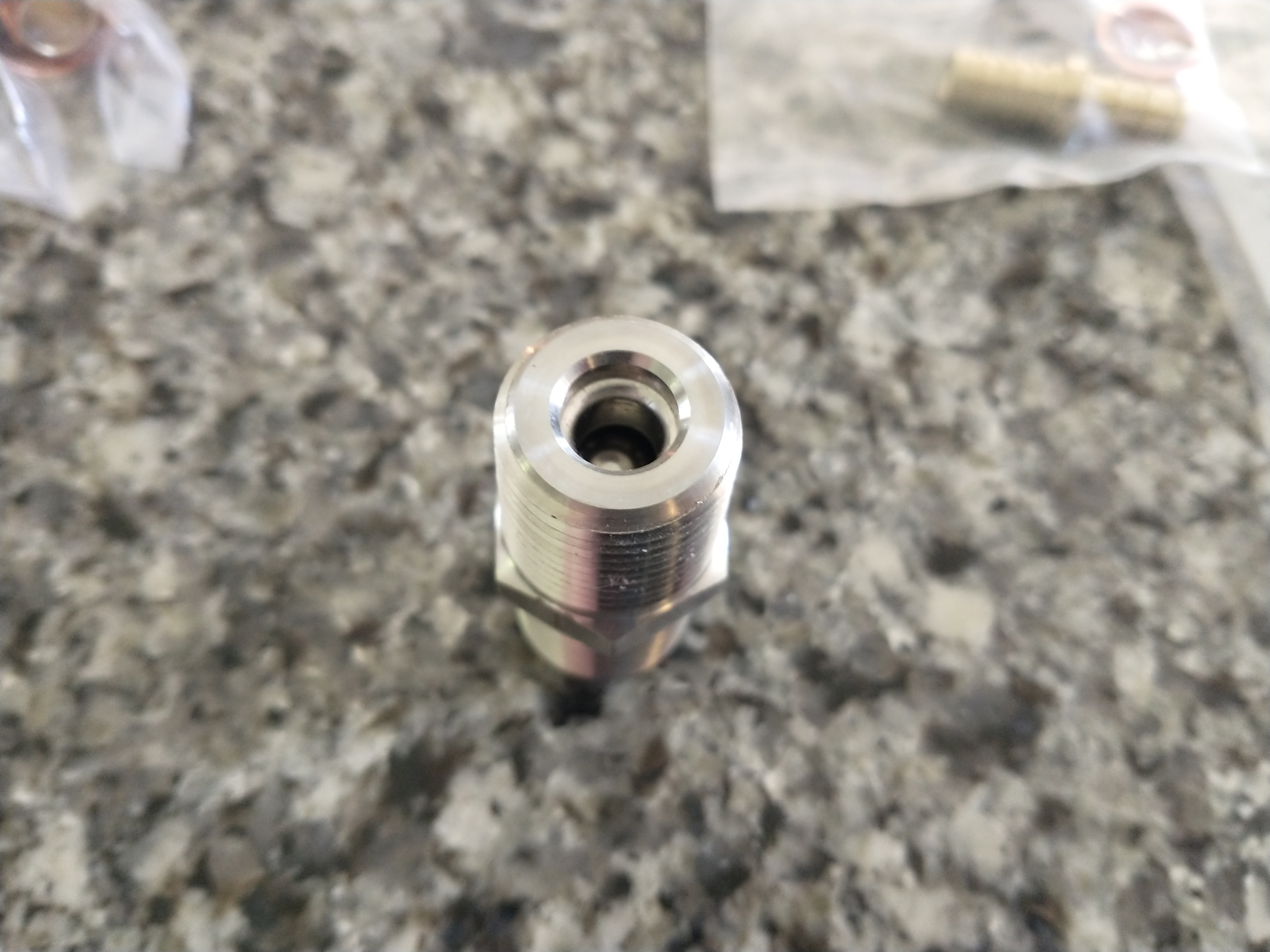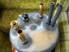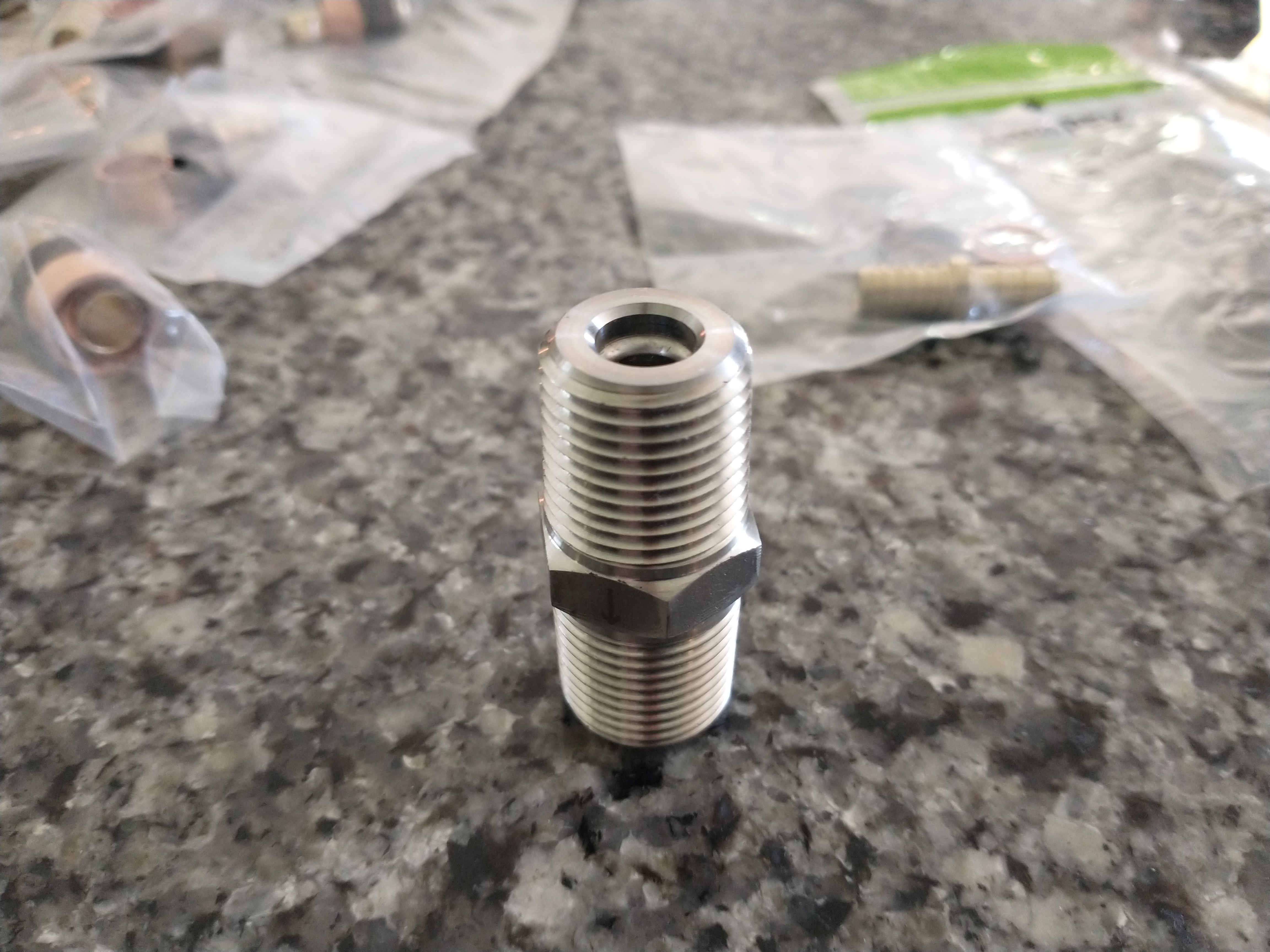 | drilled hole too small, pressed in pipe. | | | | | Later I replaced the shorter pipe with a longer one to give me more space | |