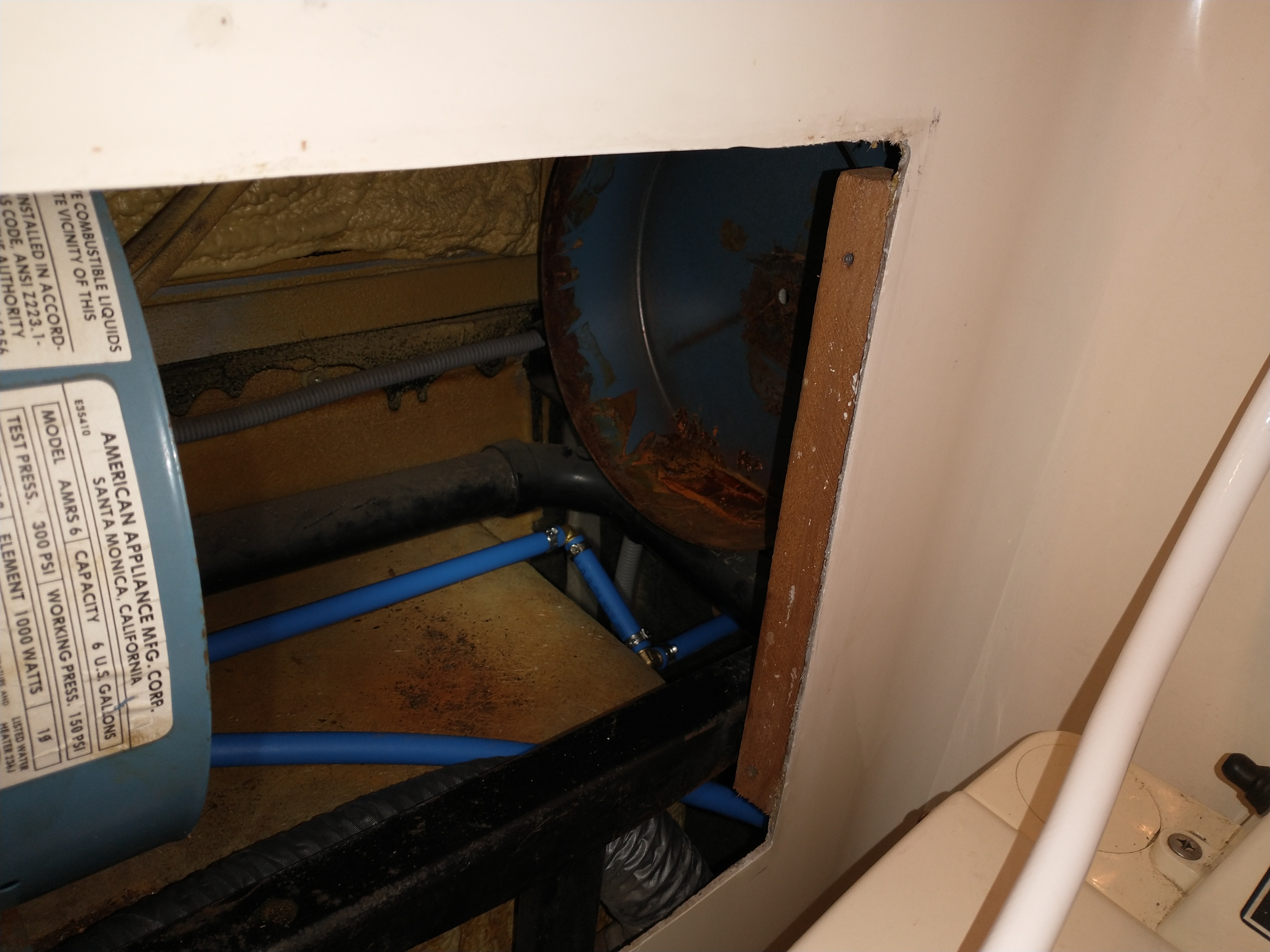 | old water heater in place | | | | | pb hot water line, I don't think its every been off | |