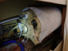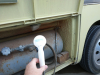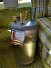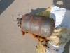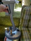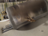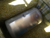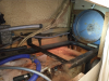 | the clamp thingies that hold the pipe to the supports were very annoying to dislodge | | | | tank still supported by the blue metal support on the back | | | gross, and you won't believe the gunk that came out when I rinsed the tank out | |
