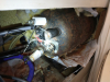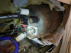 | | finally I can see the thermostat | | | | 4 bolts hold tank support in place, just removed 2 on the left side | |