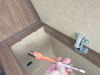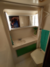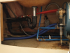 | yeah, hot going to wrong side | | | this turd was way too loud. replaced with straight pipe | | | | rerouted lines so bathroom sink has hot and cold on correct side | |