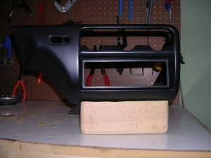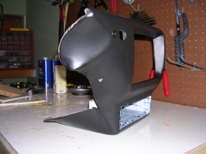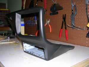 And finally a picture of the fiberglass piece attached to the original plastic dash piece